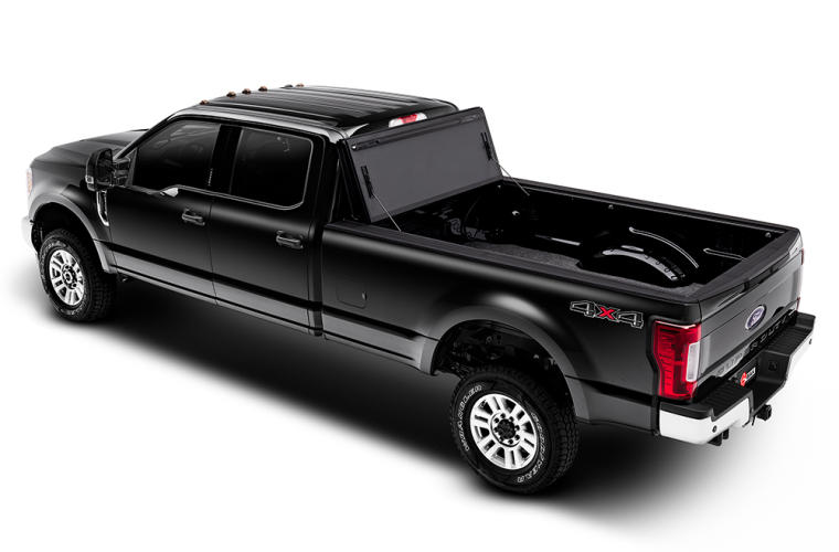 • Hinged At Front Front hinge allows the entire tonneau to flip up when folded