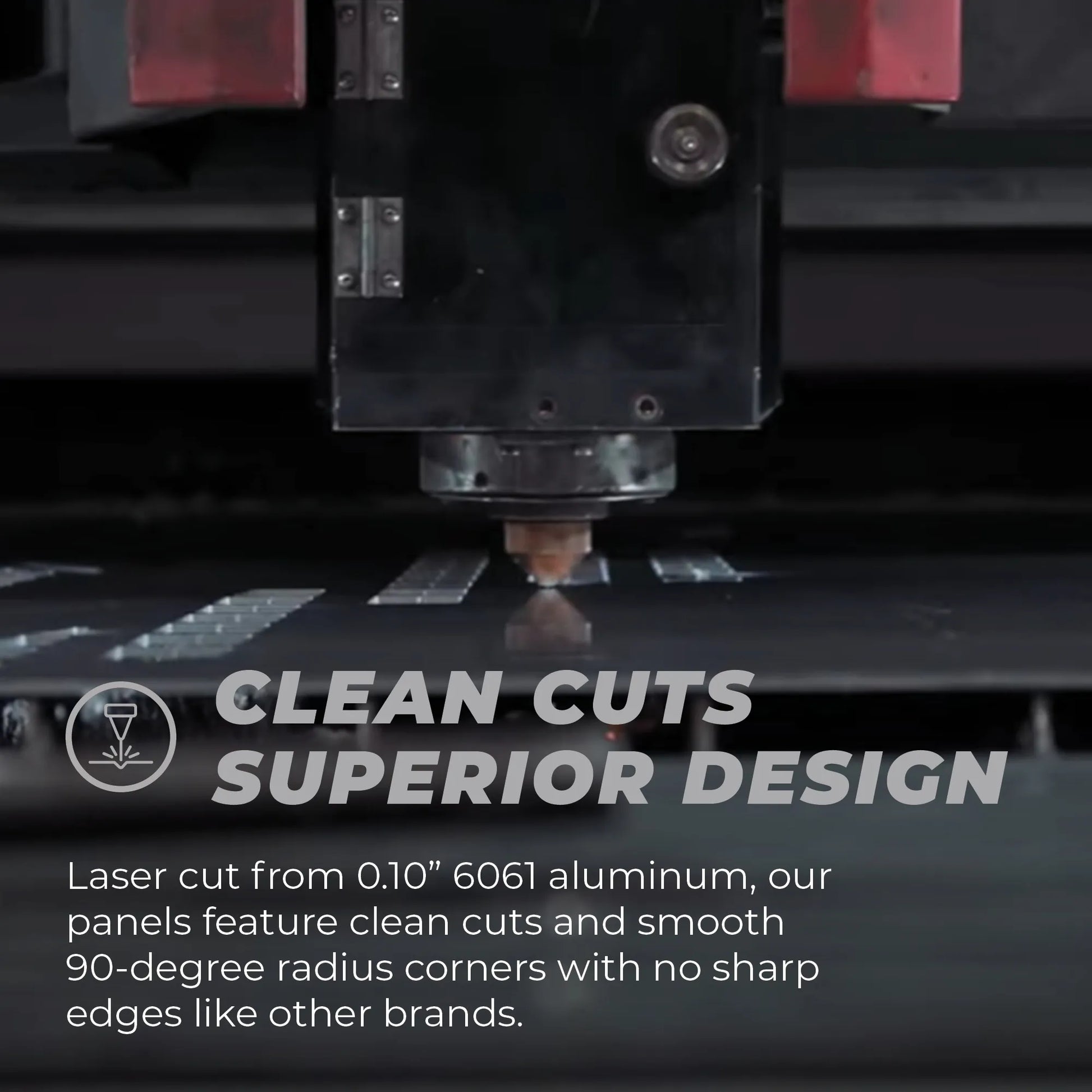 • Laser-cut .10″ 6062 aluminum with rounded edges for safety and professional finish