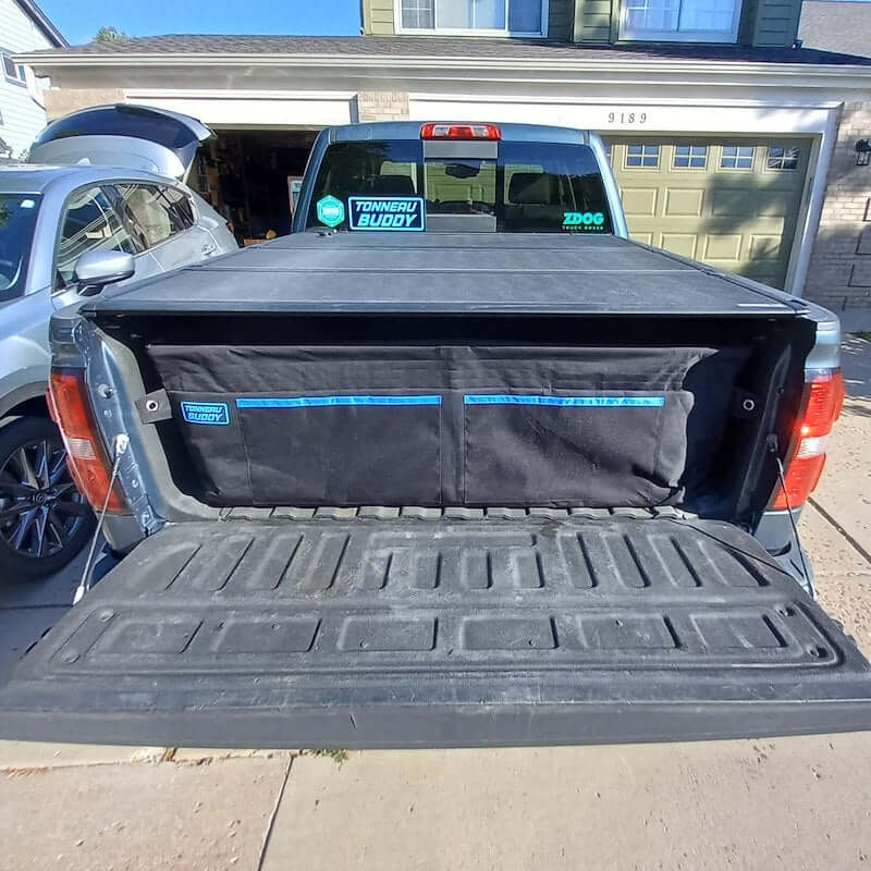 Organize your truck bed with the Tonneau Buddy Full Size, designed to fit under tonneau covers and built with a durable 600D polyester cover and lightweight PVC frame—nearly 50% lighter than the HD model. Offers over 12 cubic feet of water-resistant, height-adjustable storage. Easy to install, remove, and perfect for everyday use.